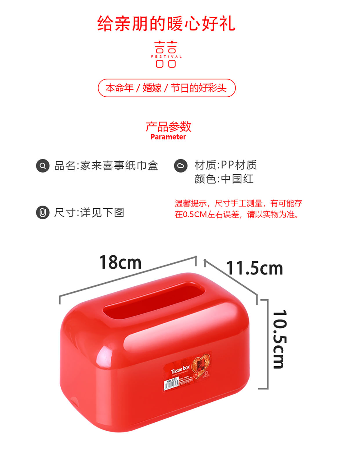方形紙巾盒(大紅清裝)
