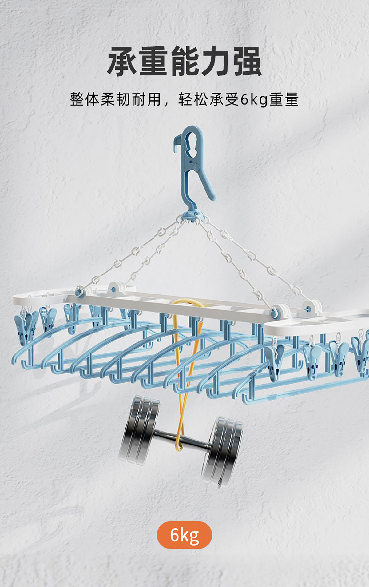 Size: 8衣架+12衣夾/折合:480*350*65mm 展開:700*380*125mm