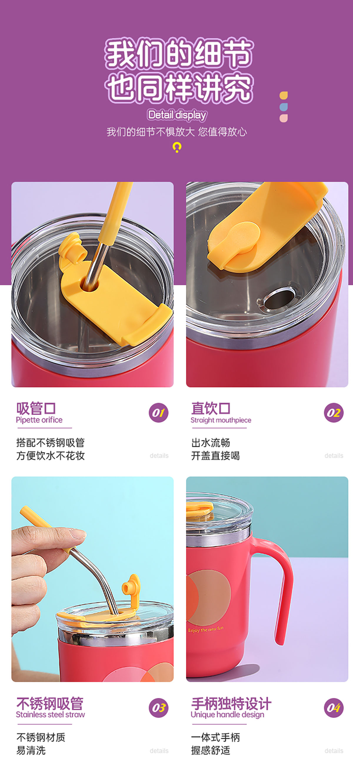 400ml/500ml時(shí)尚不銹鋼雙飲杯(配不銹鋼吸管)
