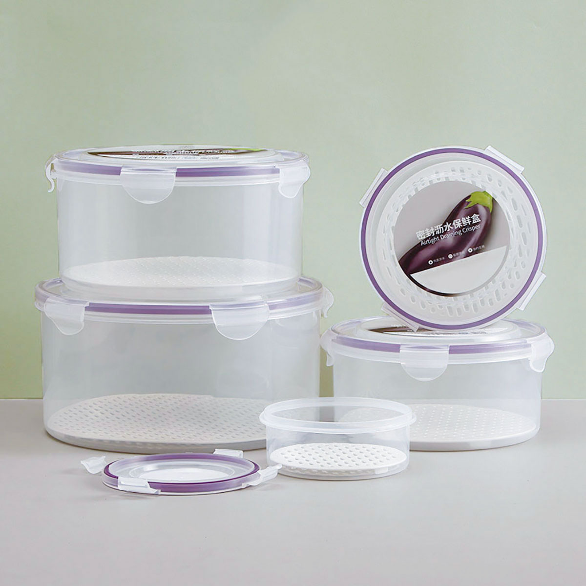 美時圓形密封瀝水保鮮盒(350ml/850ml/1700ml/2780ml/4220ml)