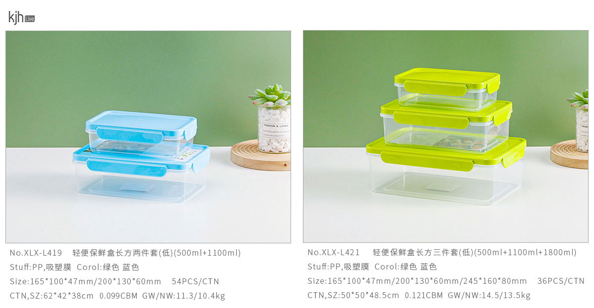 XLX-L421:165*100*47mm/200*130*60mm/245*160*80mm(500ml+1100ml+1800ml)