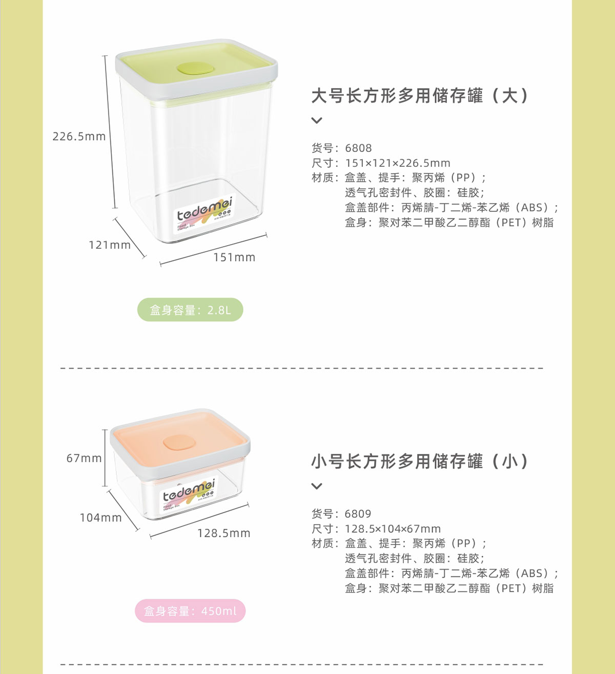 大號(hào)/小號(hào)長(zhǎng)方形多用儲(chǔ)存罐(小號(hào)/中號(hào)/大號(hào))