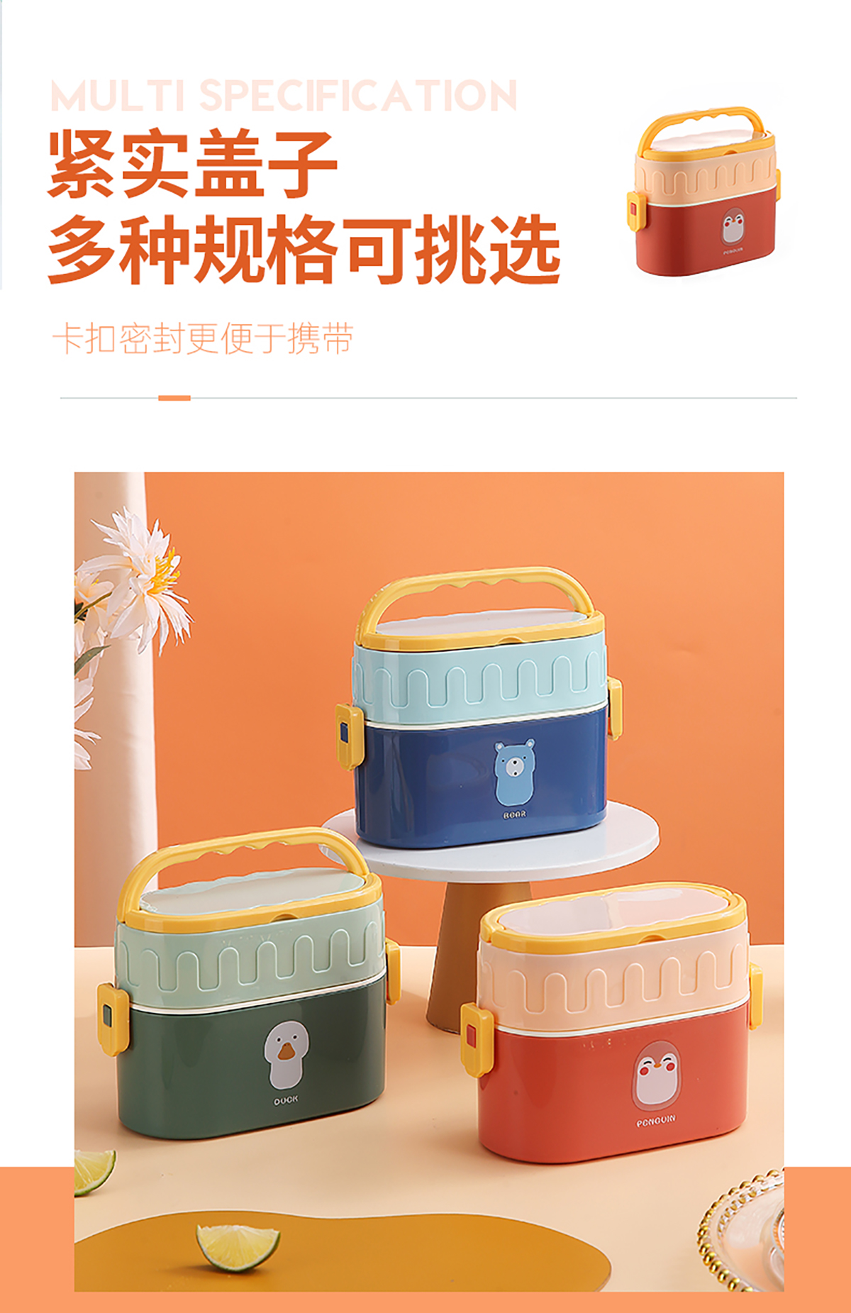 呆萌卡通雙層餐盒(橢圓形)950ml