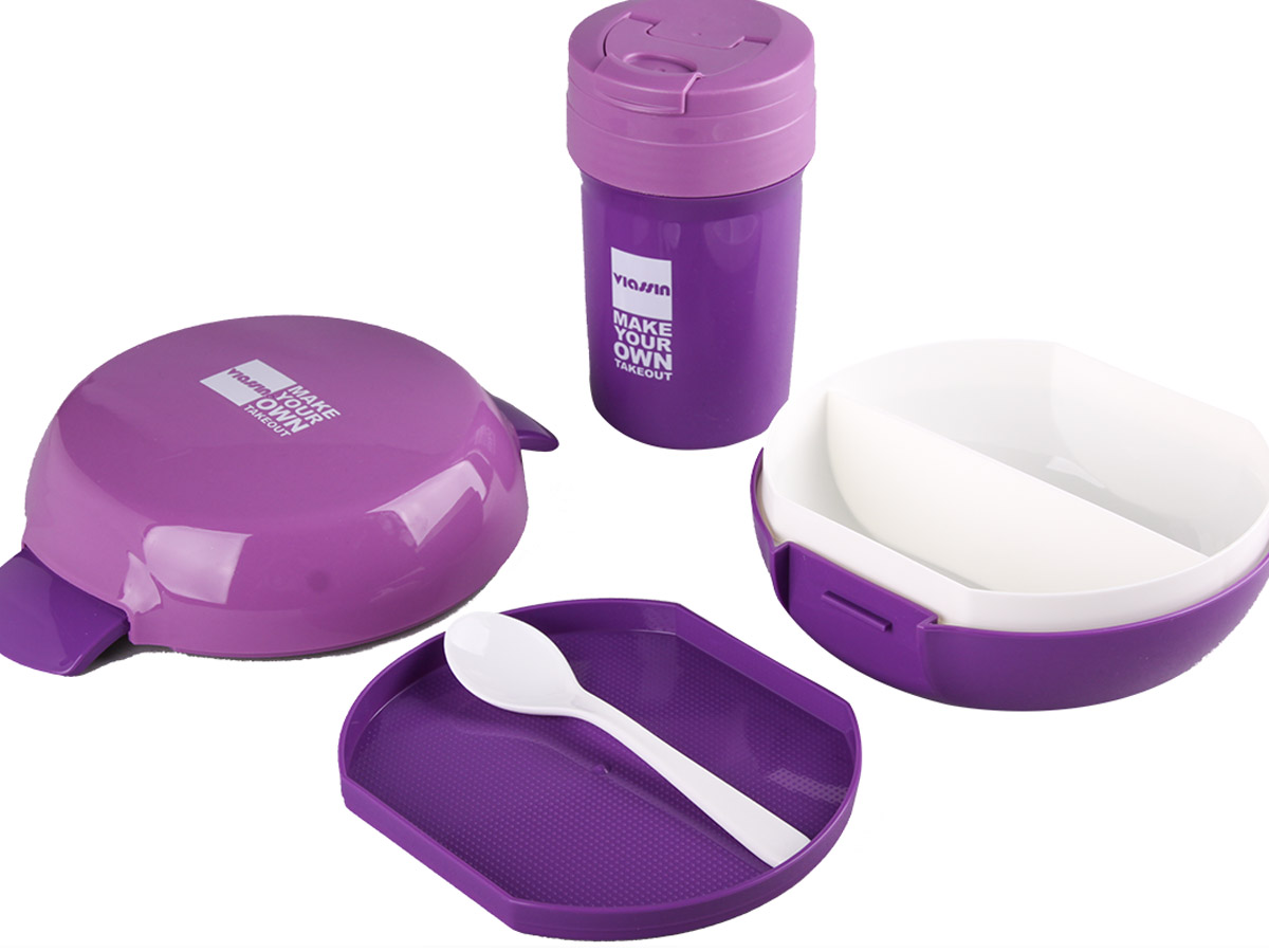鮮樂3格餐盒+隨手杯套裝(圓形600ml+350ml)