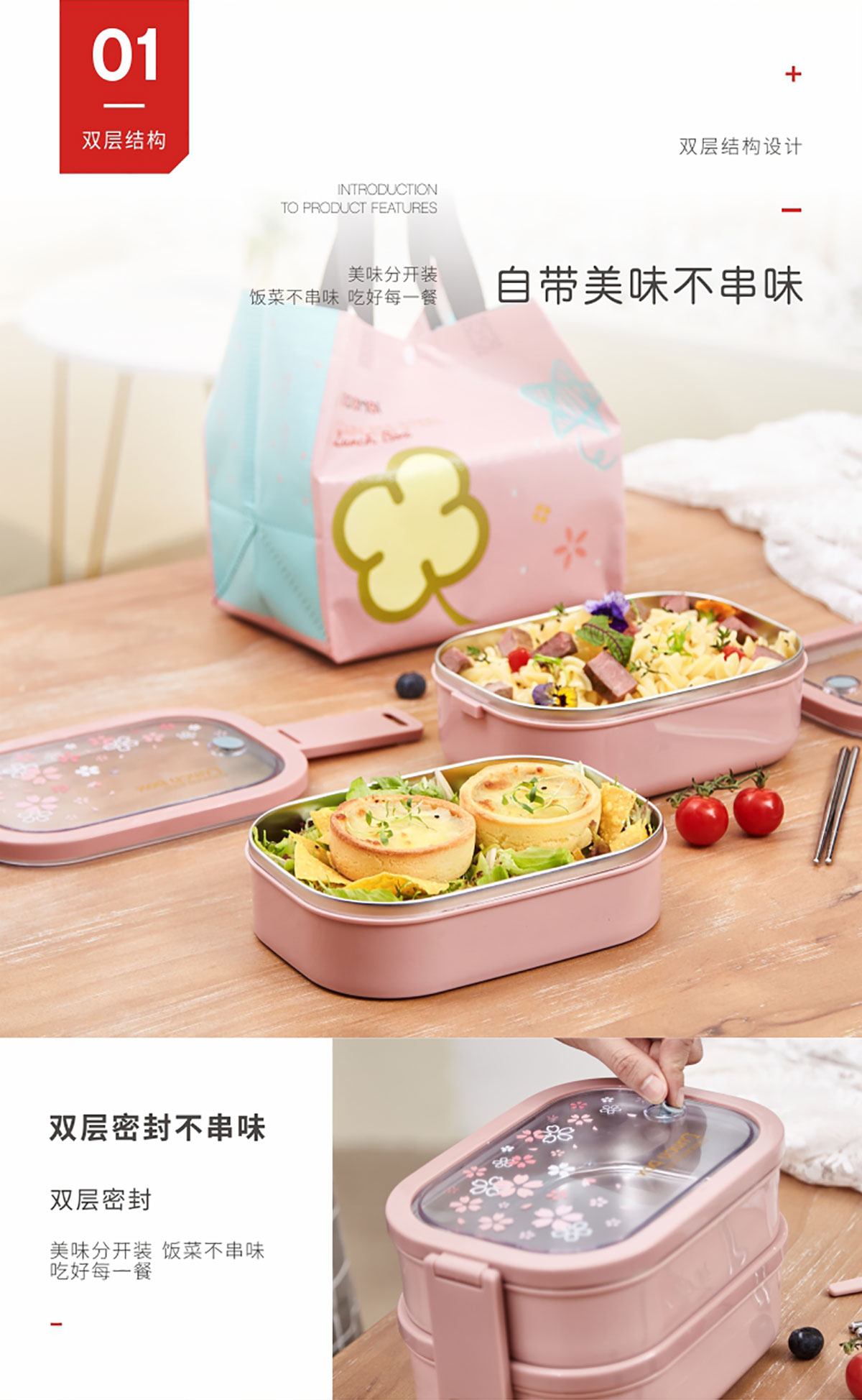 美悅雙層不銹鋼餐盒 2300ml(附送餐盒袋)