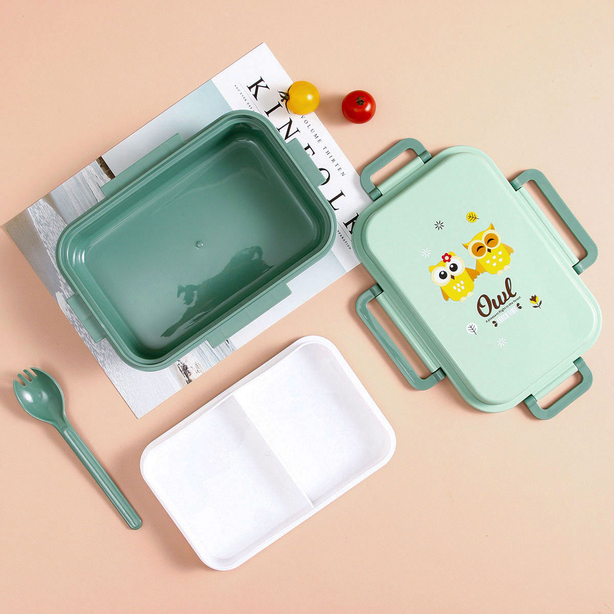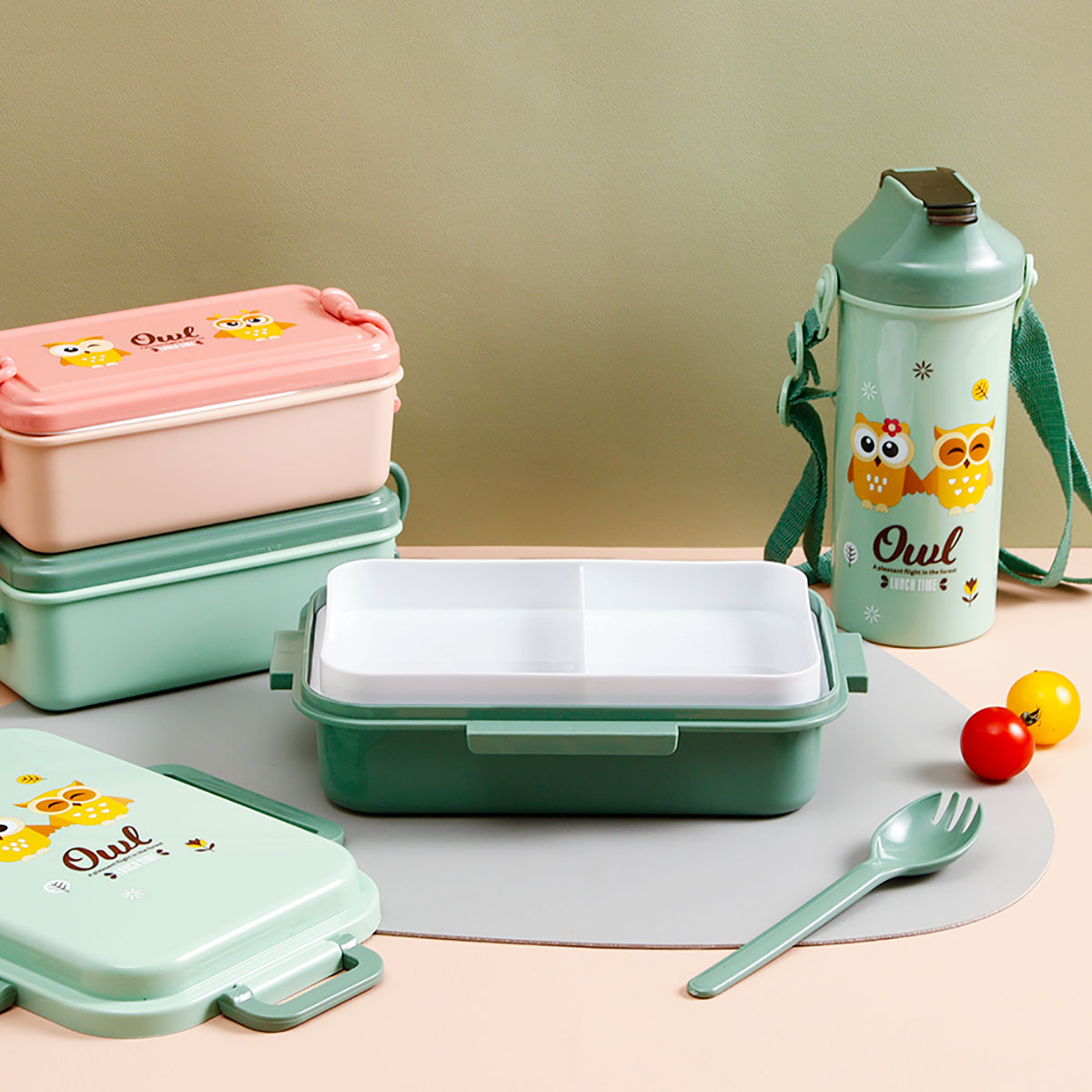 日式便當盒/四扣便當盒+500ml卡通水壺