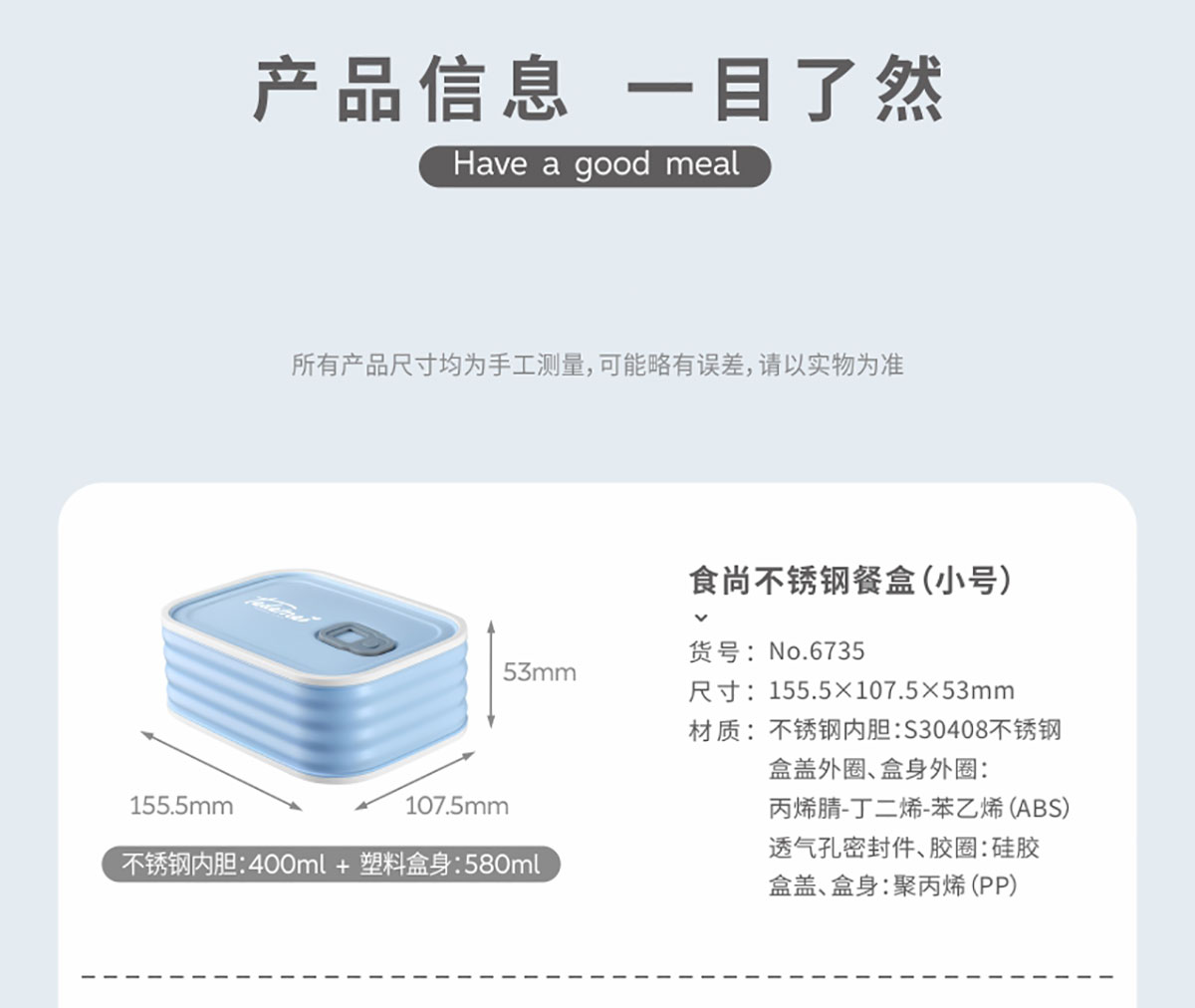 Size: HM-6735:156*108*53mm/小號580ml