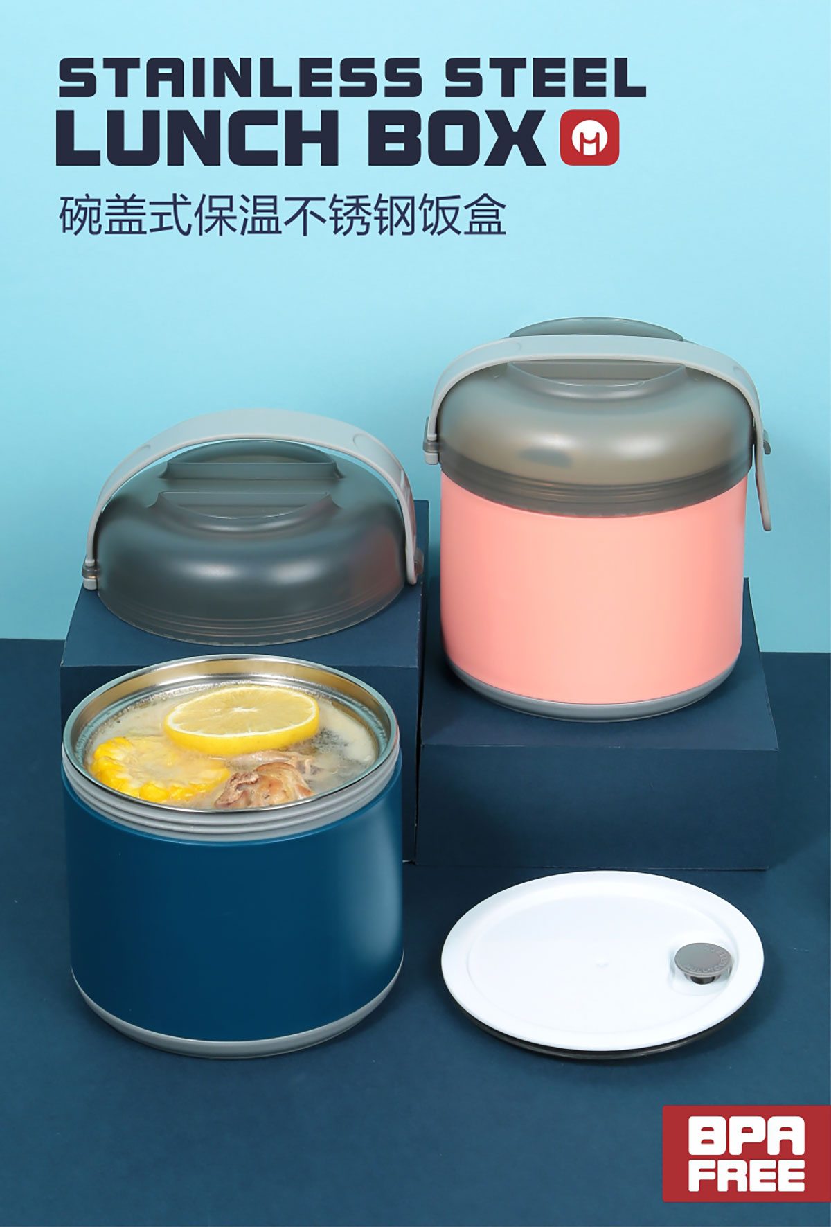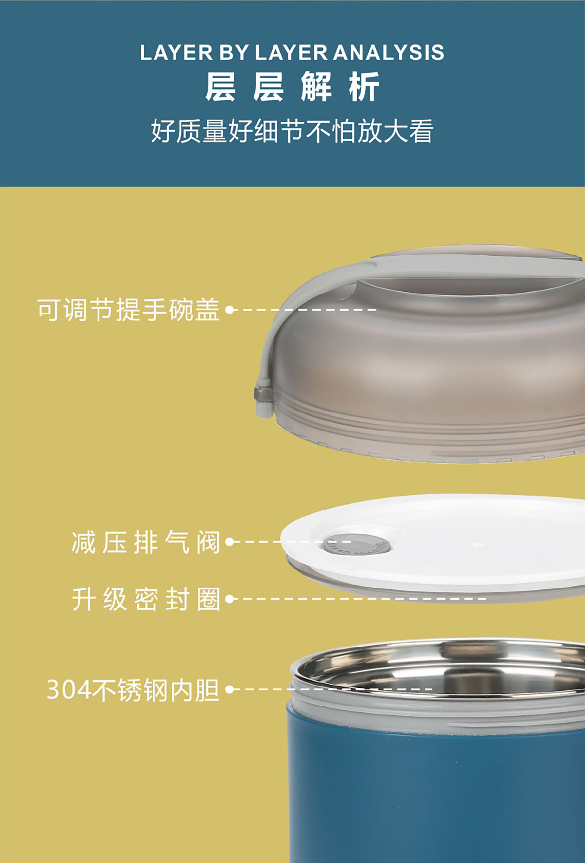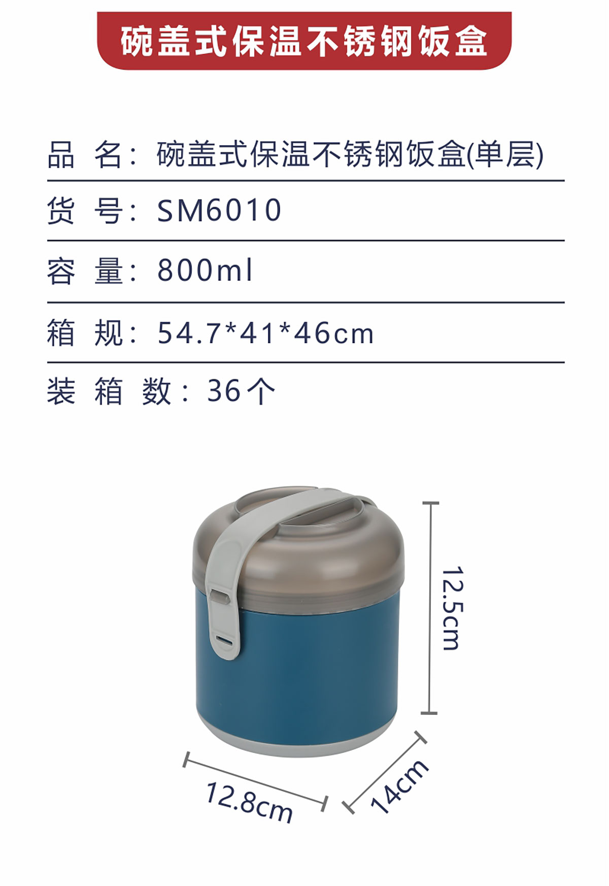 碗蓋式保溫不銹鋼飯盒單層800ml