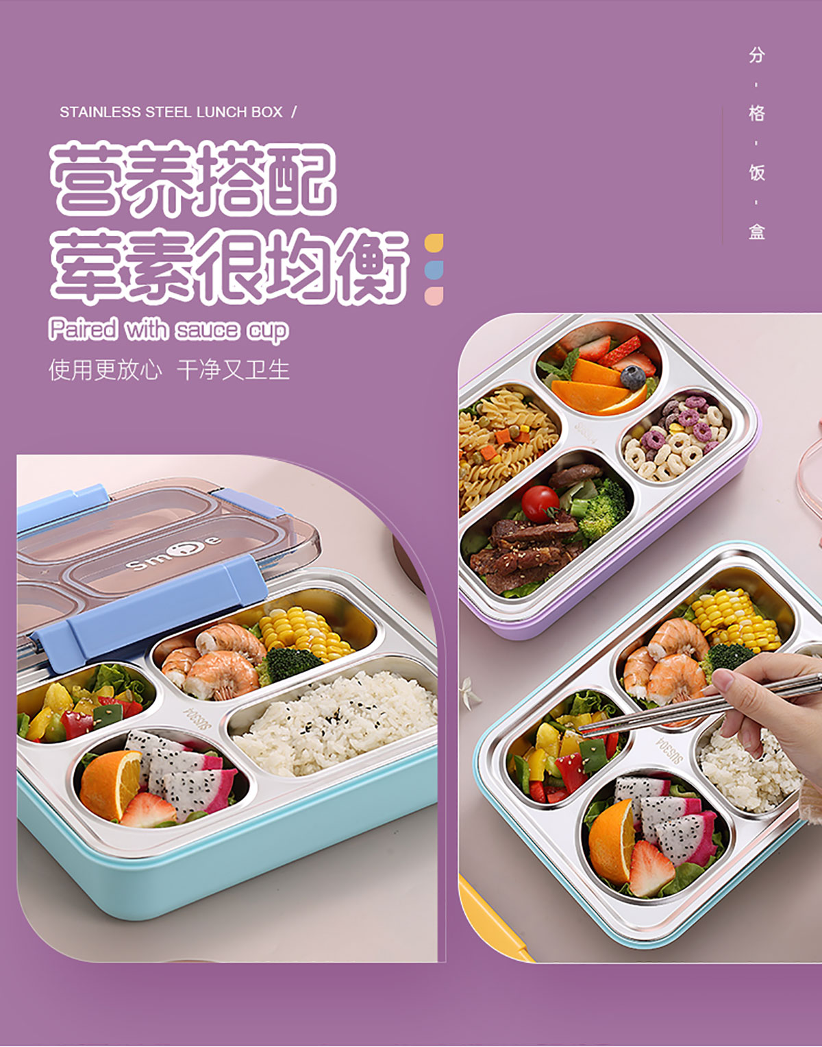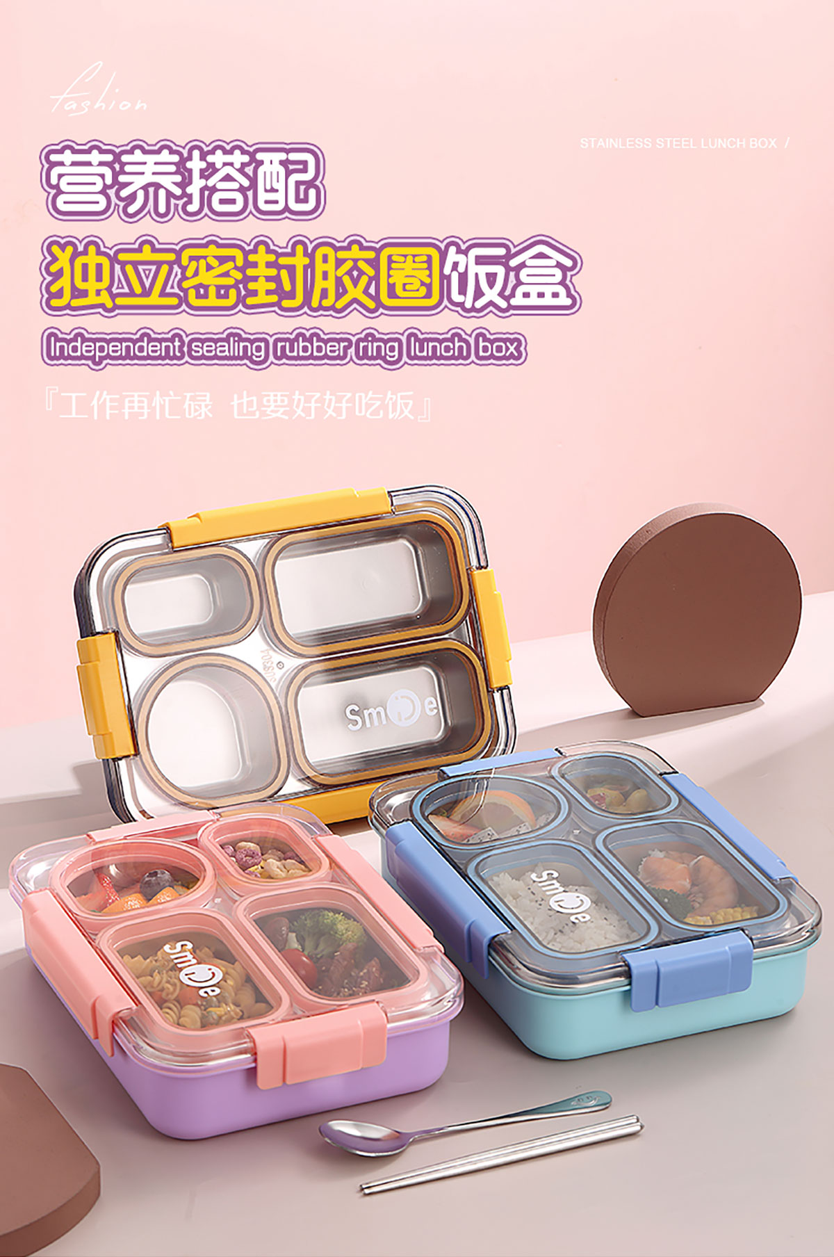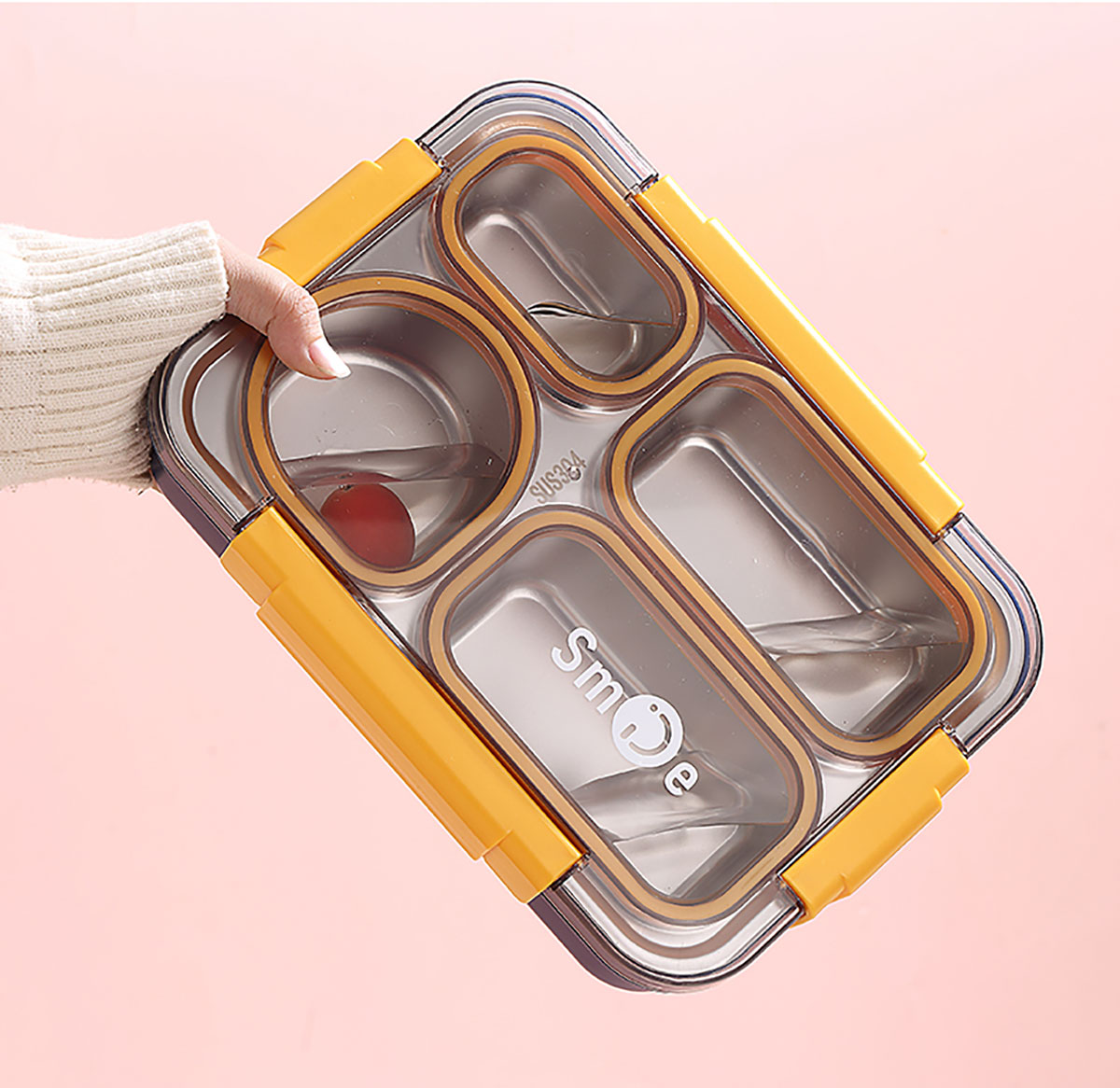 900ml獨(dú)立密封不銹鋼餐盒(4格+不銹鋼勺筷)