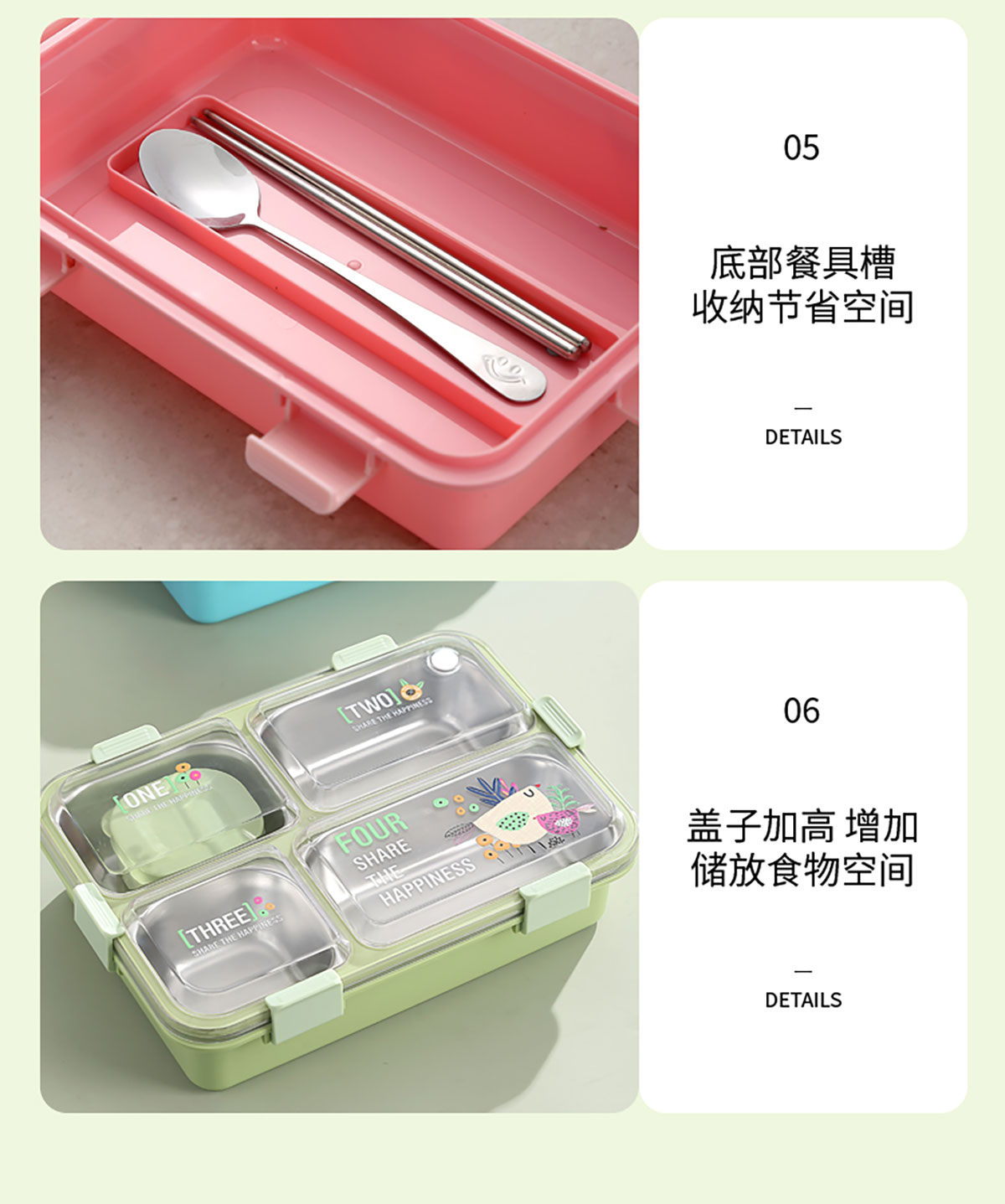 3D噴繪大三格/四格帶醬盒/四格帶碗加高不銹鋼餐盒