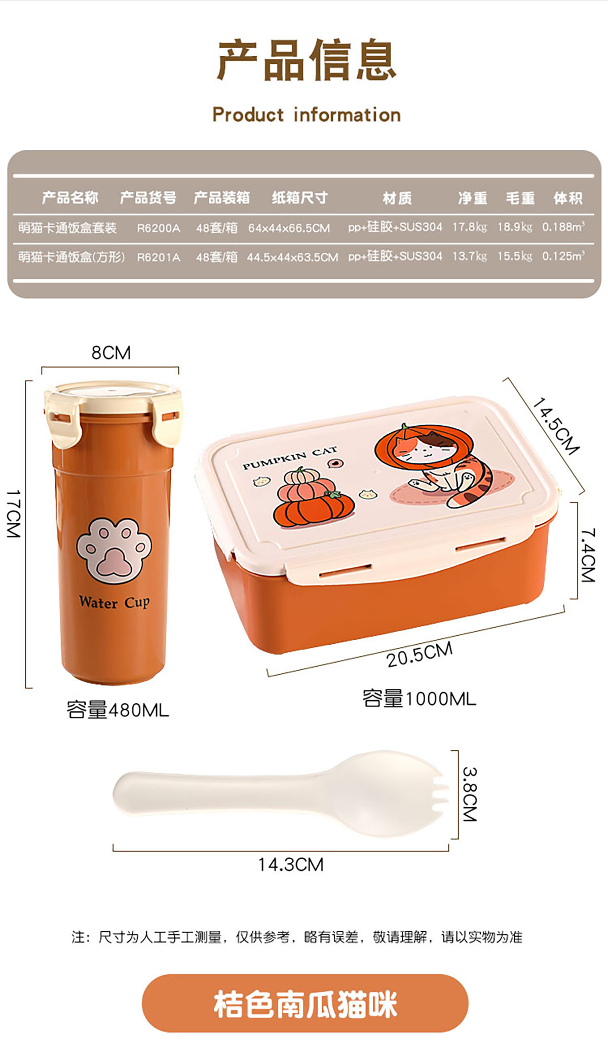 Size: XL-R6200A(套裝):205*145*74mm/1000ml 水壺:80*170mm/480ml
