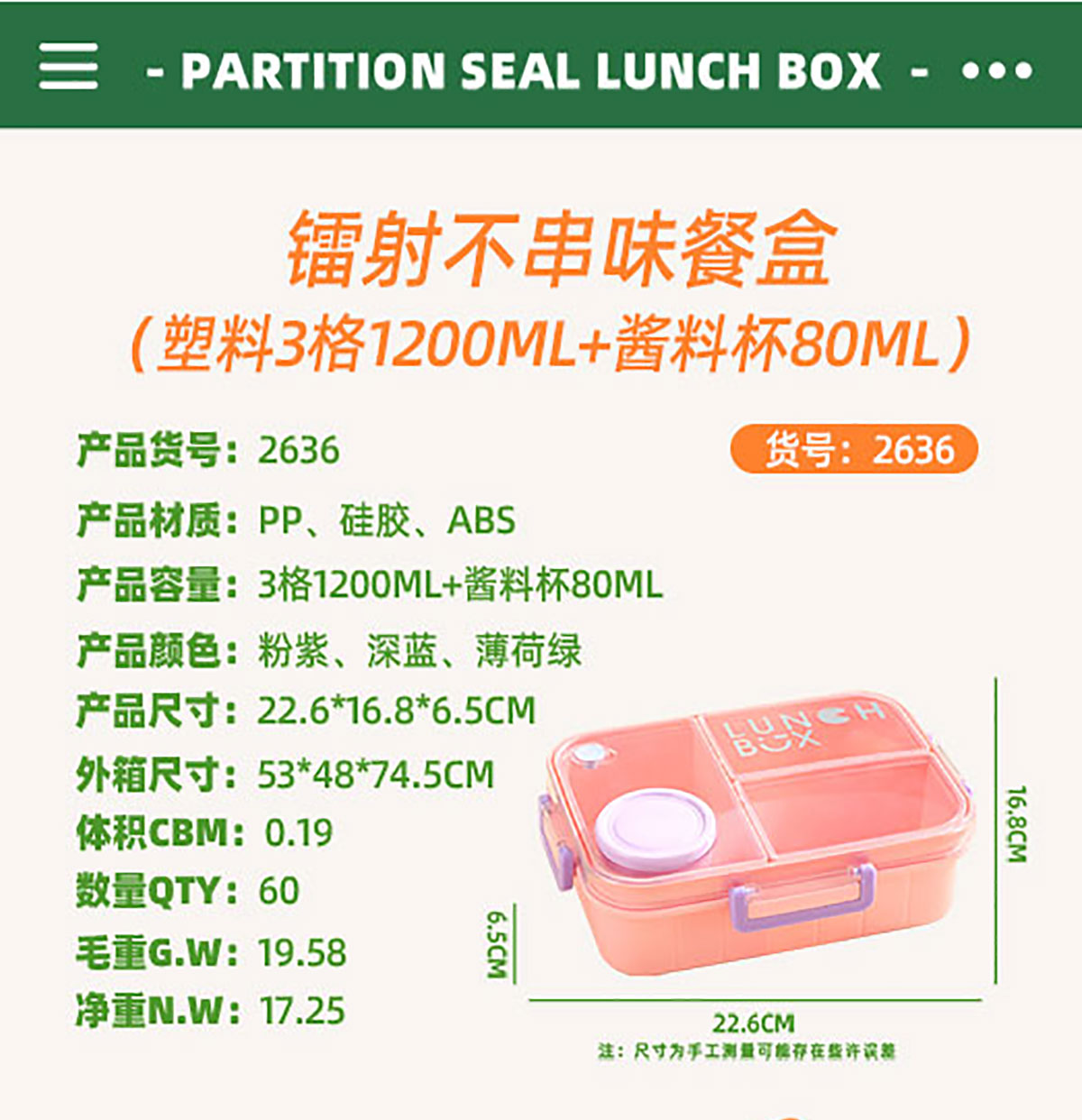 Size: AQX-2635(2格):226*168*65mm AQX-2636(3格):226*168*65mm