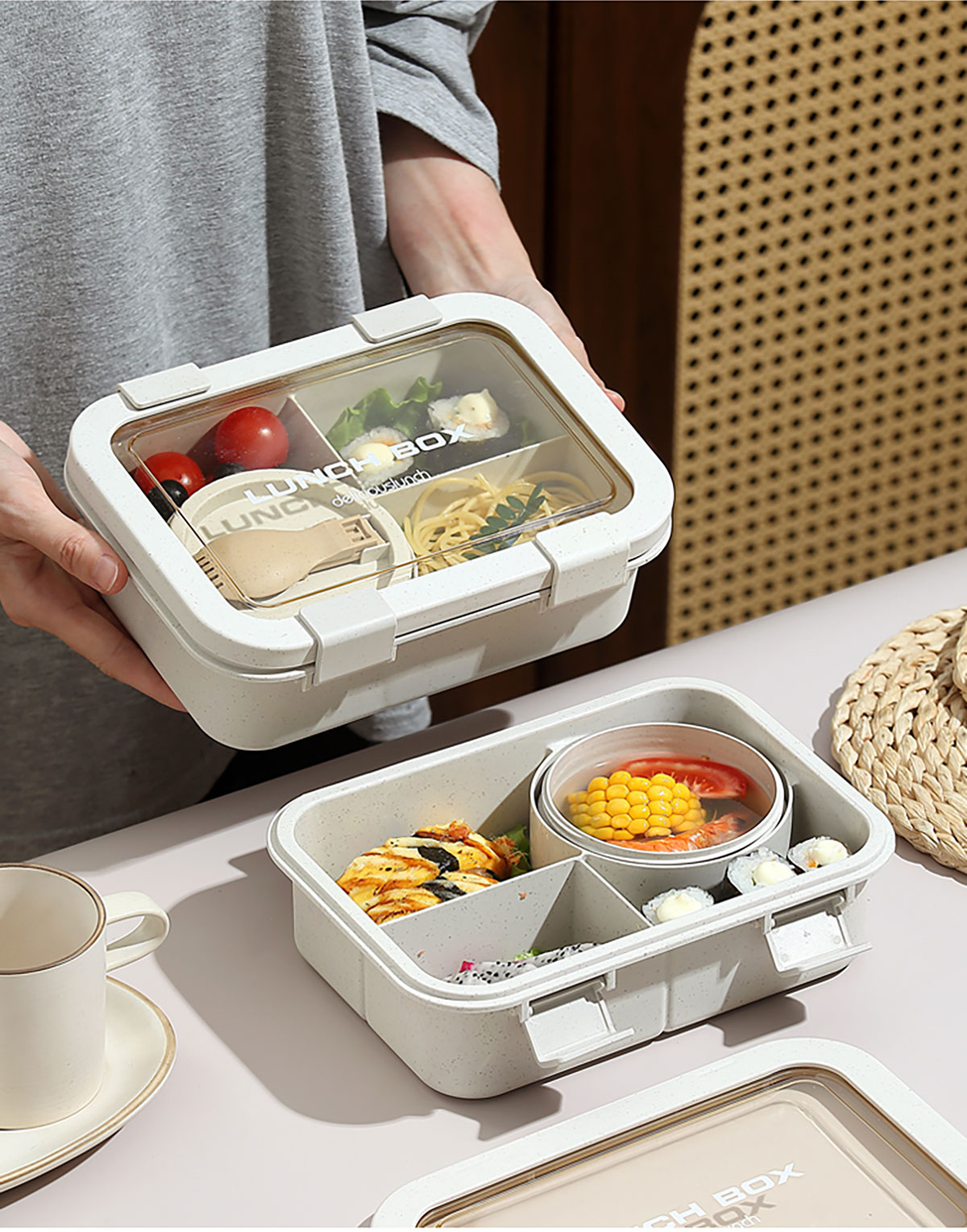 Size: 飯盒:215*160*71mm/1250ml 湯碗:直徑96*51mm/250ml
