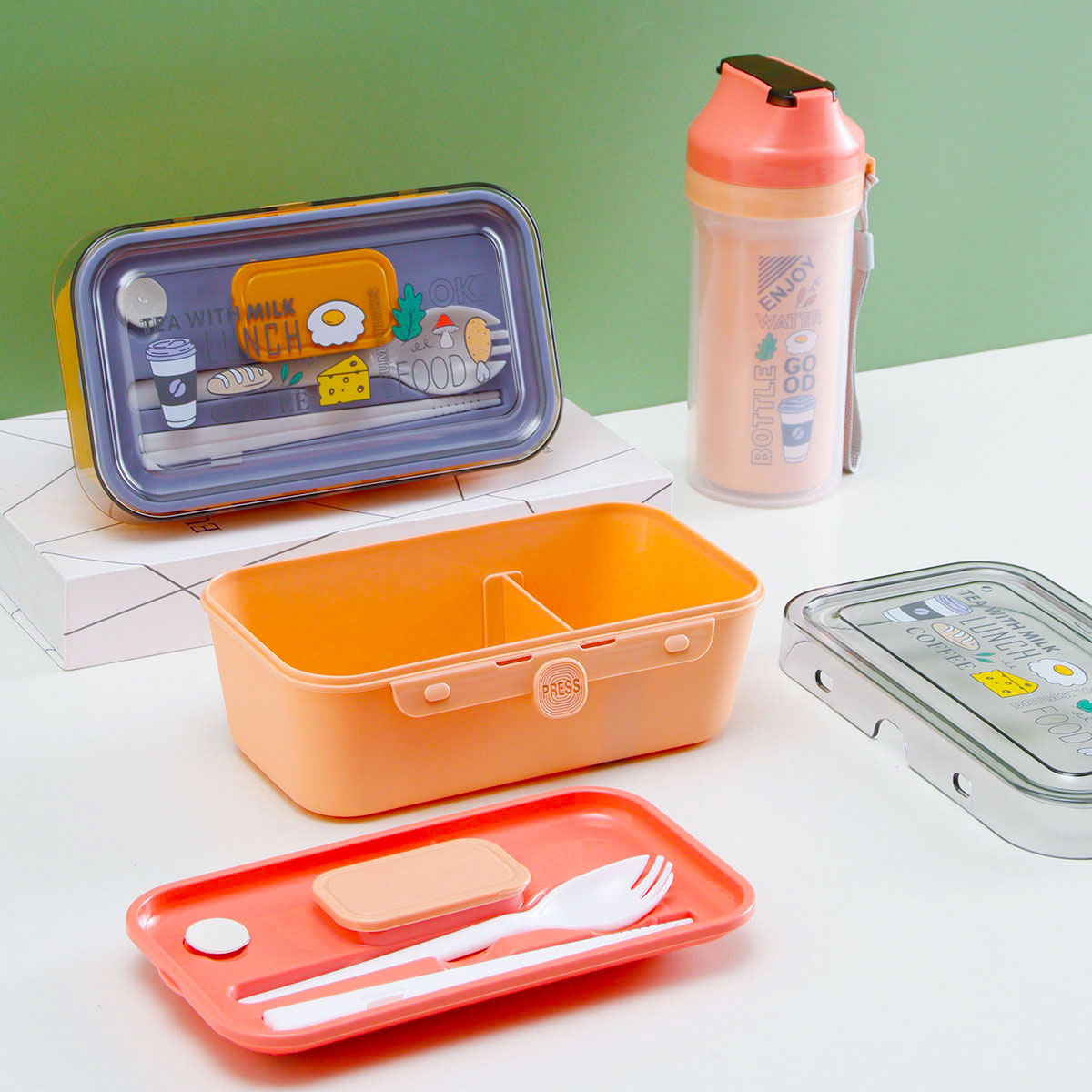 按壓便當(dāng)盒+500CC杯中杯水壺