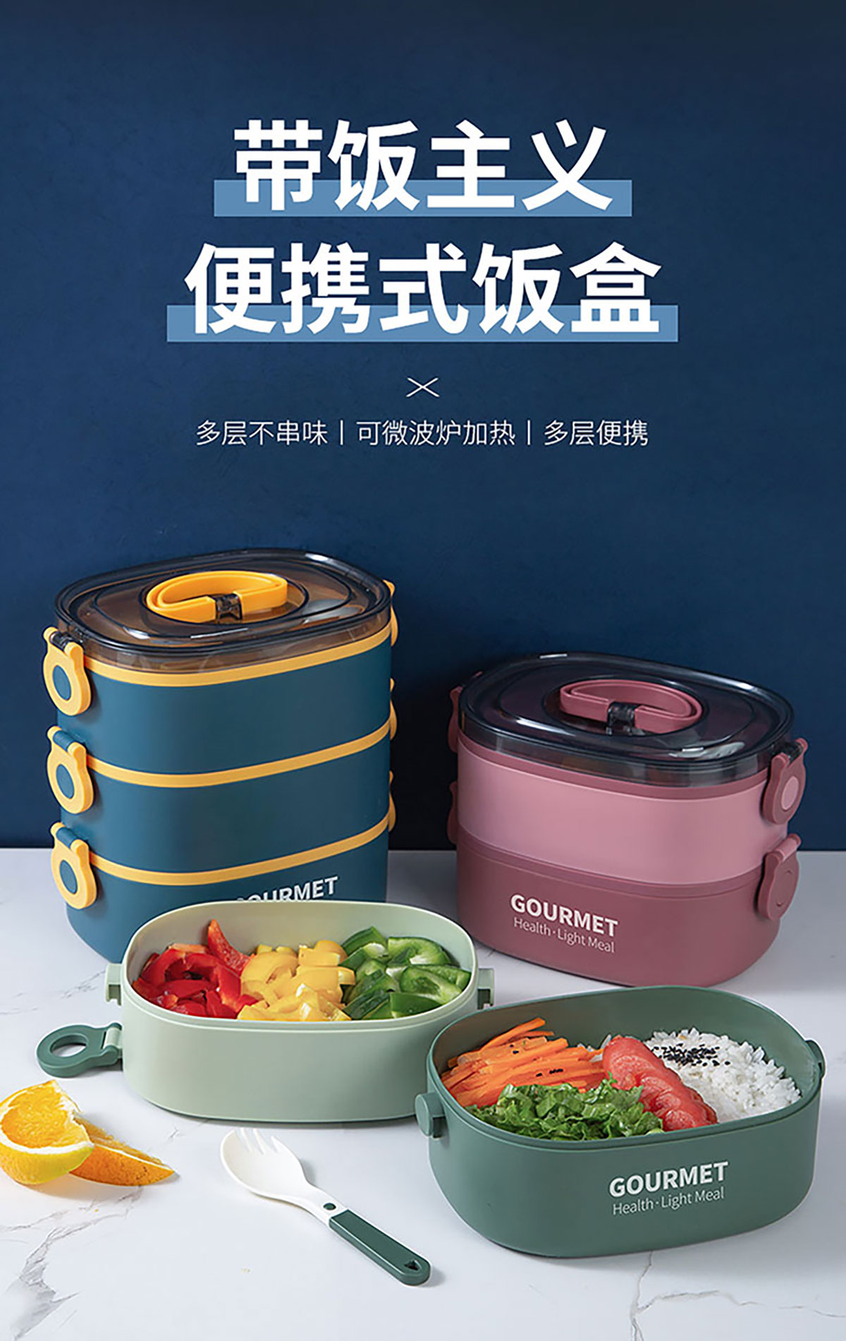味鮮橢圓單層/雙層/三層塑料飯盒