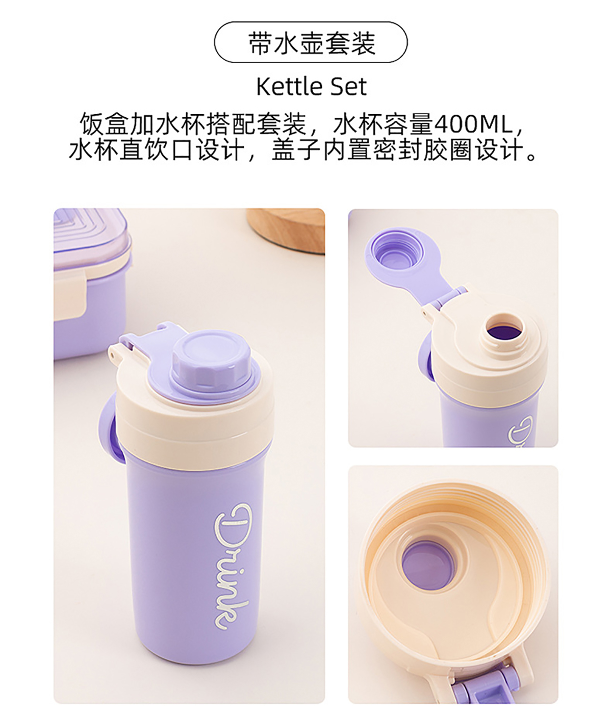 Size: 飯盒:214*143*81mm/1100ml 水壺:φ82*61*163mm/400ml