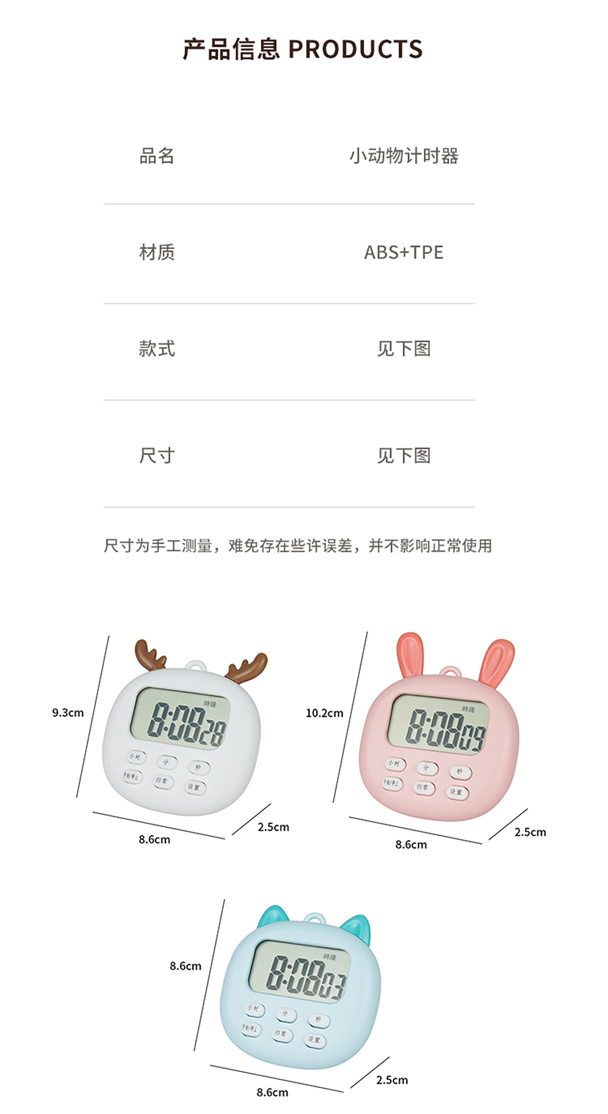 Size: 86*93*25mm(鹿角)/86*102*25mm(兔耳)/86*86*25mm(貓耳)